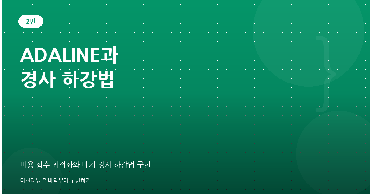 1편: 퍼셉트론 · 2편: ADALINE과 경사 하강법 · 3편: 확률적 경사 하강법(SGD)
